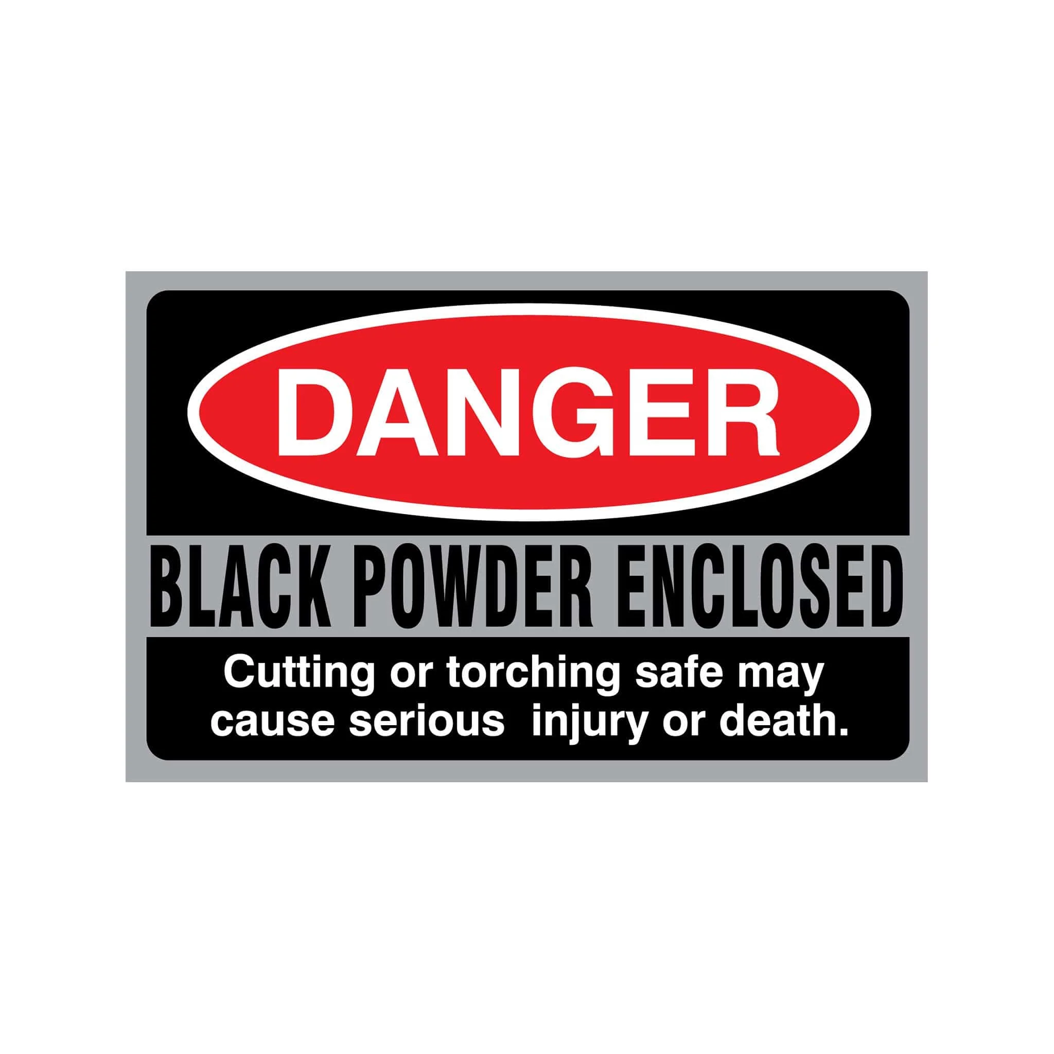 Discourage thieves from torching or cutting safe. This attention grabbing decal is sized to fit on door frame: 2-5/8" (W) x 1-3/4" (H). Black Powder and gun powder is used in firearms and fireworks and can explode rapidly when it comes in contact with sparks or any flame.