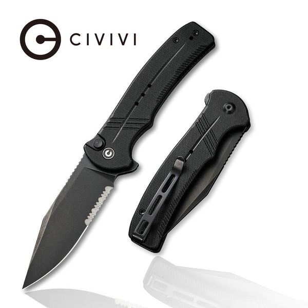 Sold OutCIVIVI Cogent | Black G10 Handle Black Stonewashed 14C28N Half Serrated Blade Button Lock