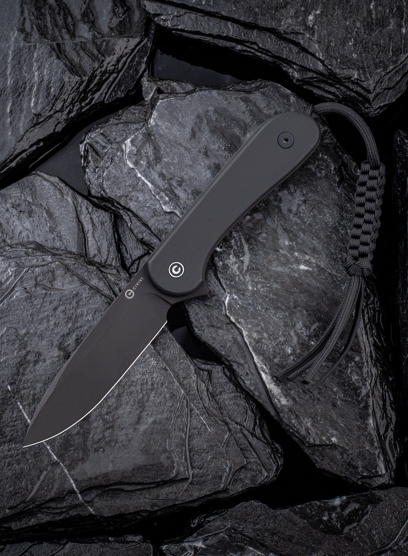 $43.00 USD $50.00 USDCIVIVI Fixed Blade Elementum | Black G10 Flat Handle Black Stonewashed D2 Blade w/ 1PC Black Kydex Sheath