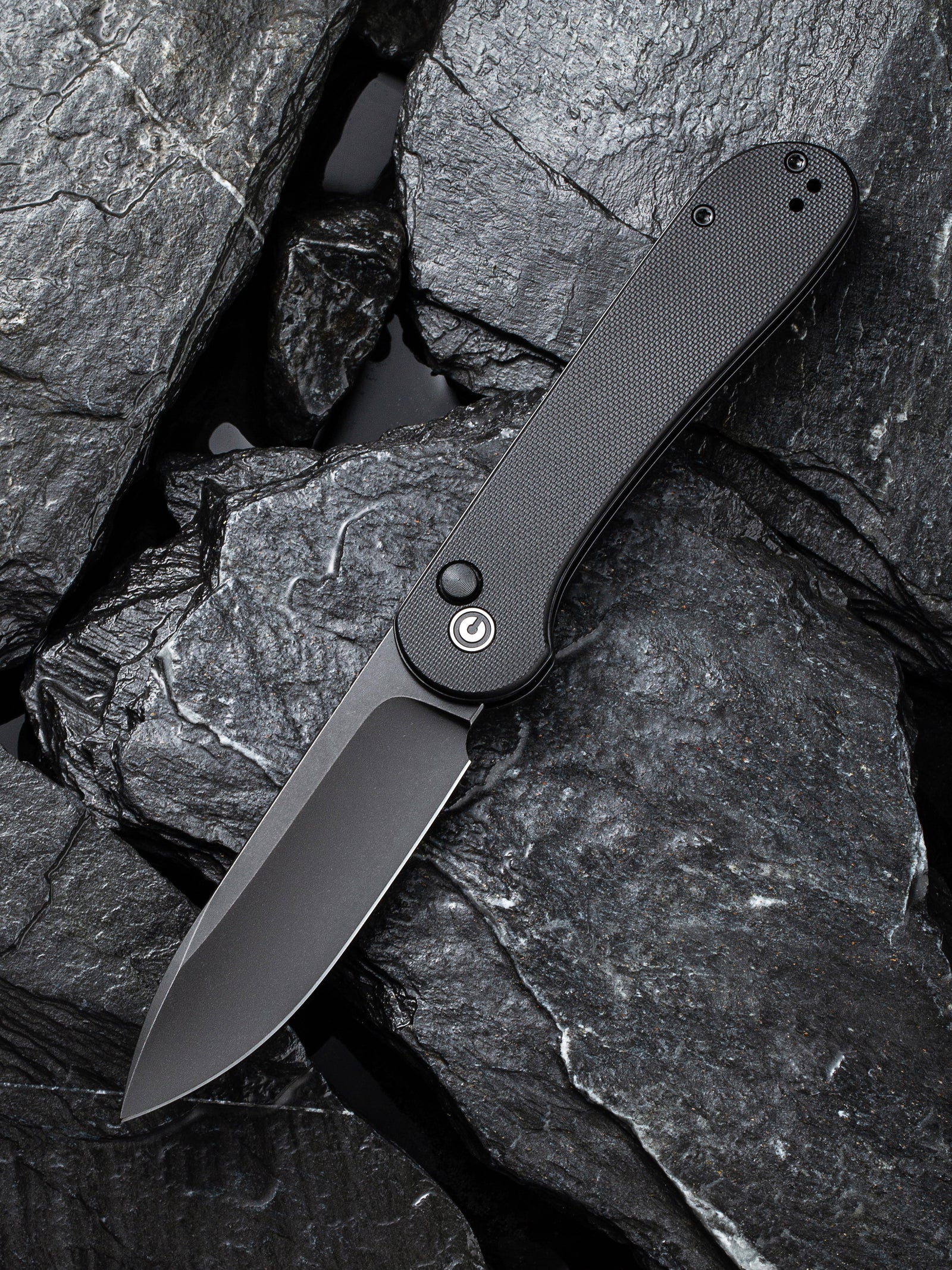 CIVIVI Button Lock Elementum | Black G10 Handle Black S/S Liner Black Stonewashed 14C28N Blade
