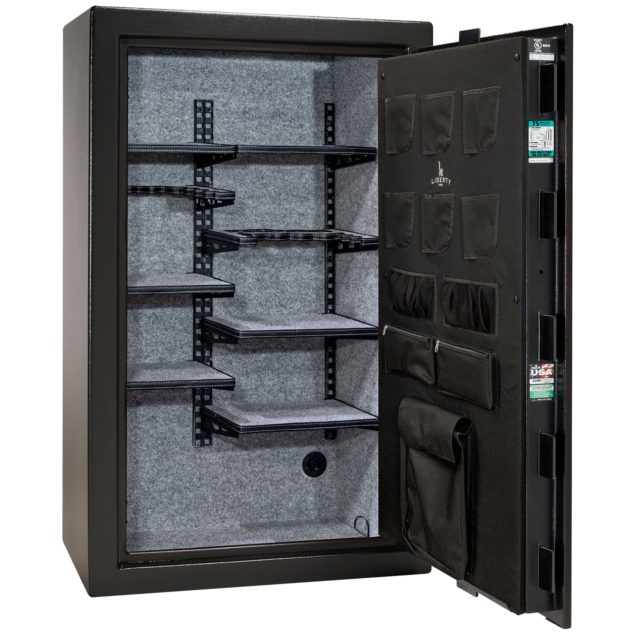 The Colonial Pro Flex™ designed with an all-new modular shelving system is an ideal mid-level gun safe for those who prefer a fully customizable interior. Featuring ¼" Solid State™ locking bars and a full 75 minutes of Cool Box™ fire protection at 1200°F, the Colonial offers higher security, better fire protection, and is also available in additional interior configurations, including our fully upholstered, 3-in-1 Flex™ adjustable interior and a 6-in-1 Flex™ adjustable interior for the Colonial 50 Extreme.